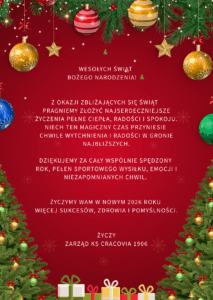 Rodzinnych Świąt Bożego Narodzenia oraz Szczęśliwego Nowego Roku życzy KS Cracovia 1906